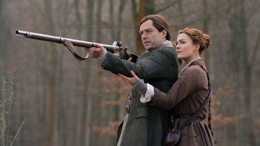 Reparto:Caitríona Balfe (Claire Randall Fraser), Sam Heughan (Jamie Fraser), Richard Rankin (Roger Wakefield MacKenzie), Sophie Skelton (Brianna Randall Fraser), César Domboy (Fergus Claudel Fraser), Lauren Lyle (Marsali MacKimmie Fraser), Caitlin O'Ryan (Lizzie Wemyss)