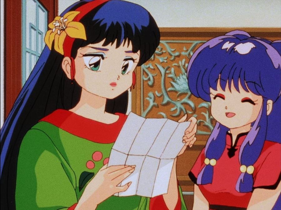 Ya en su dormitorio, Akane se contempla en su espejo, ruborizada por lo que le había dicho Ranma, mientras se sonríe, de inmediato aparece él por su ventana y le comienza a molestar diciéndole que era mentira lo que le había dicho en la tarde; consiguiendo así que Akane lo golpeará y nuevamente resultará con el cuello luxado.