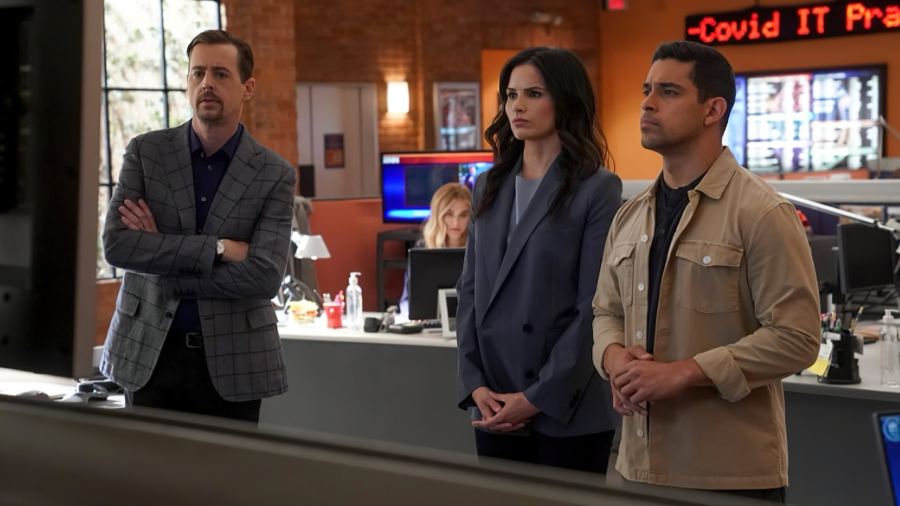 Reparto:Mark Harmon (Leroy Jethro Gibbs), Sean Murray (Timothy McGee), Wilmer Valderrama (Nick Torres), Brian Dietzen (Jimmy Palmer), David McCallum (Dr. Donald 'Ducky' Mallard), Emily Wickersham (Ellie Bishop), Rocky Carroll (Leon Vance), Diona Reasonover (Kasie Hines)