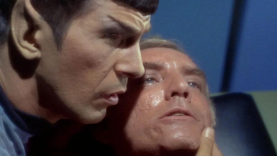 Spock kidnaps the disabled Capt. Pike, hijacks the Enterprise, and then surrenders for court martial.