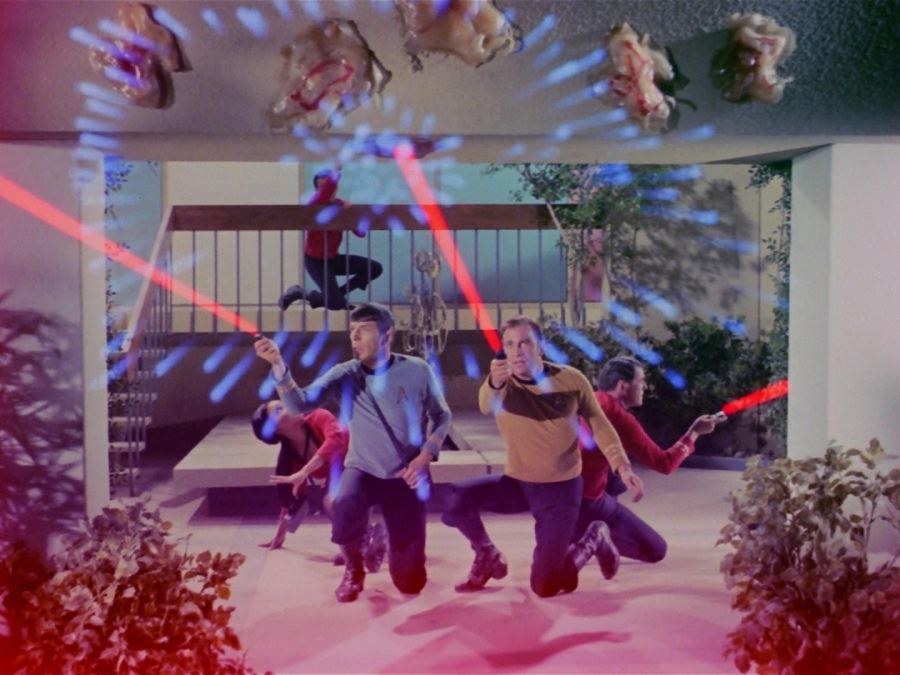 Reparto:William Shatner (James T. Kirk), Leonard Nimoy (Spock), DeForest Kelley (Dr. McCoy), James Doohan (Scott), George Takei (Sulu), Nichelle Nichols (Uhura)