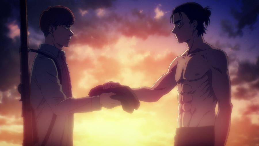 Reparto:梶裕貴 (Eren Yeager (voice)), 石川由依 (Mikasa Ackerman (voice)), 井上麻里奈 (Armin Arlert (voice)), 谷山紀章 (Jean Kirstein (voice)), 下野紘 (Connie Springer (voice)), 細谷佳正 (Reiner Braun (voice)), Takehito Koyasu (Zeke (voice)), 佐倉綾音 (Gabi Braun (voice)), 花江夏樹 (Falco Grice (voice))