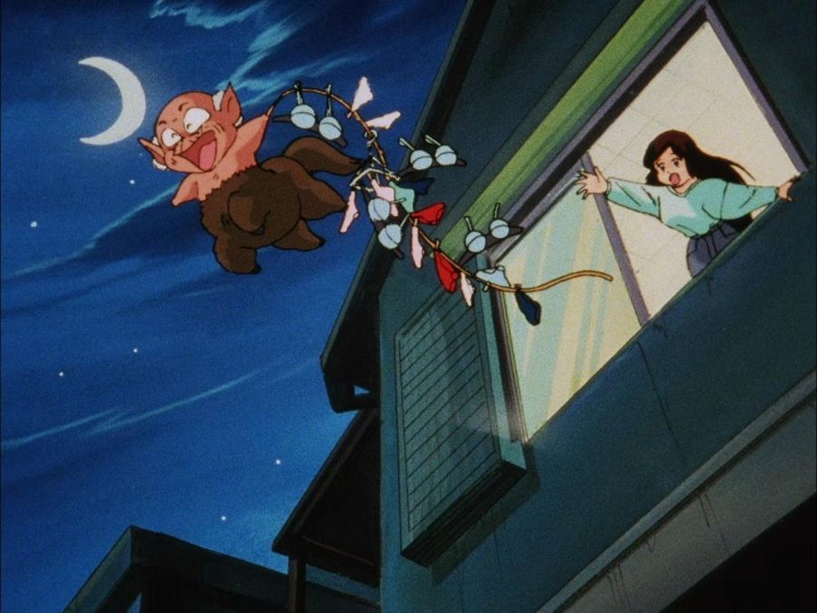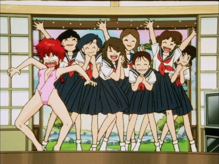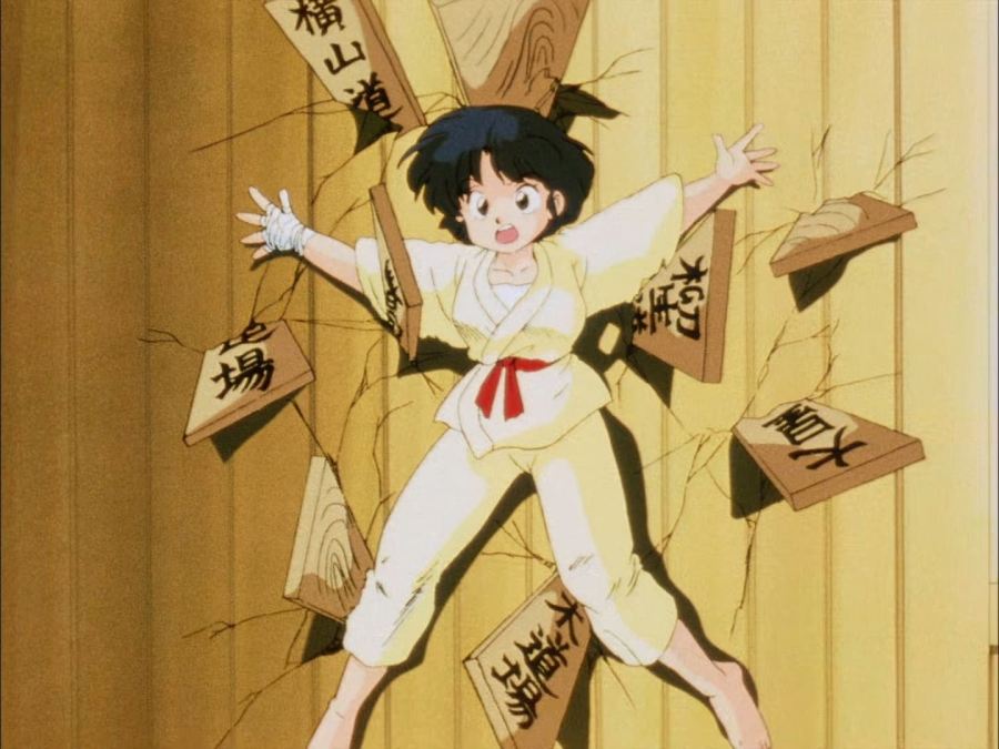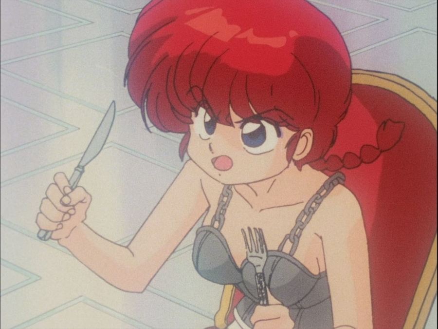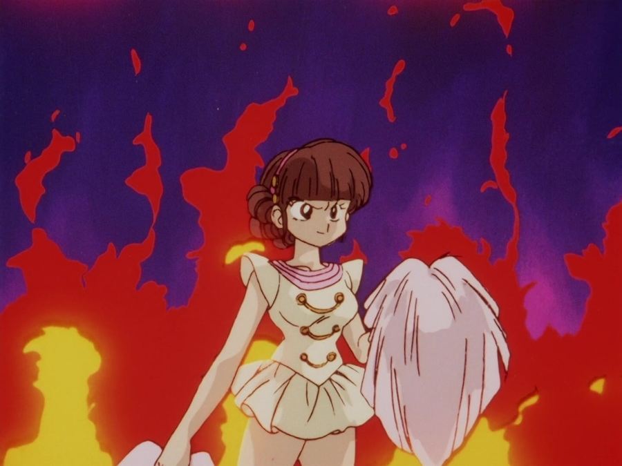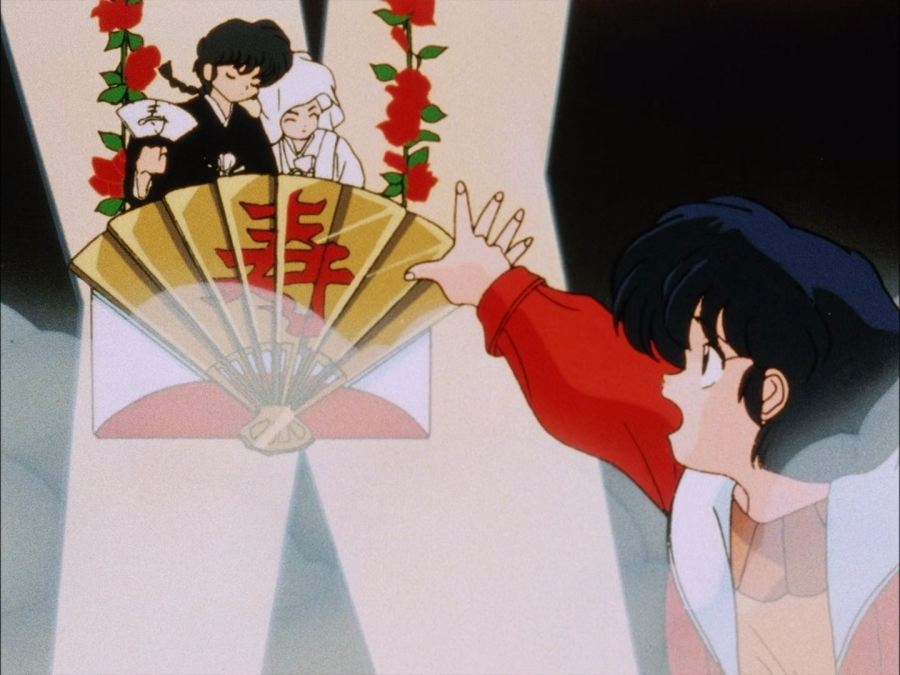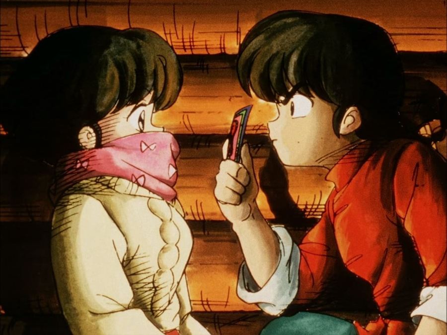 Ya en su dormitorio, Akane se contempla en su espejo, ruborizada por lo que le había dicho Ranma, mientras se sonríe, de inmediato aparece él por su ventana y le comienza a molestar diciéndole que era mentira lo que le había dicho en la tarde; consiguiendo así que Akane lo golpeará y nuevamente resultará con el cuello luxado.
