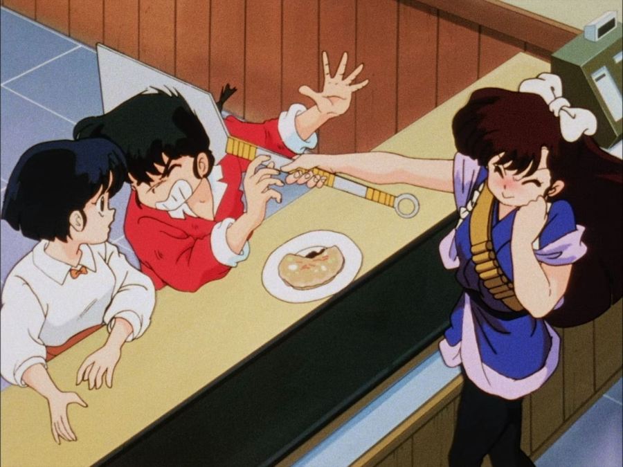 Akane se va al río que colinda en la ciudad, frustrada comienza a lanzar grandes rocas hacia el agua; Ranma la alcanza y molesta; ella muy triste le dice que él la había ido a molestar y a reírse en su cara, a lo que él le contesta que no es así; de todos modos Akane toma su maletín y se marcha, pero Ranma le continúa siguiendo; ella se devuelve y le dice que a él le gusta ella y comienza a correr, de modo que hace que Ranma caiga al río. Camino a casa, Akane le pide dinero prestado a Ranma y lo invita a comer algo. Van juntos a la plaza, allí sentados en una banca le comienza a contar sus penas de amor y el incoherente y alocado comportamiento del doctor Tofú, cuando está cerca su hermana Kasumi; Ranma le dice que es mejor que se dé por vencida, lo que hiere aún más a Akane y desata una nueva discusión, dejándolos enojados. Akane retorna sola a casa. Una vez en casa, Akane se encuentra entrenando en el patio y llega Ranma a interrumpirla; ella enfadada le dice que si él no venía a pelear en serio, que mejor la dejara entrenar sola; a lo que Ranma le responde; si a caso no se cansaba de estar todo el tiempo enojada, diciéndole además: "te ves linda si sonríes", dejando a Akane sorprendida.